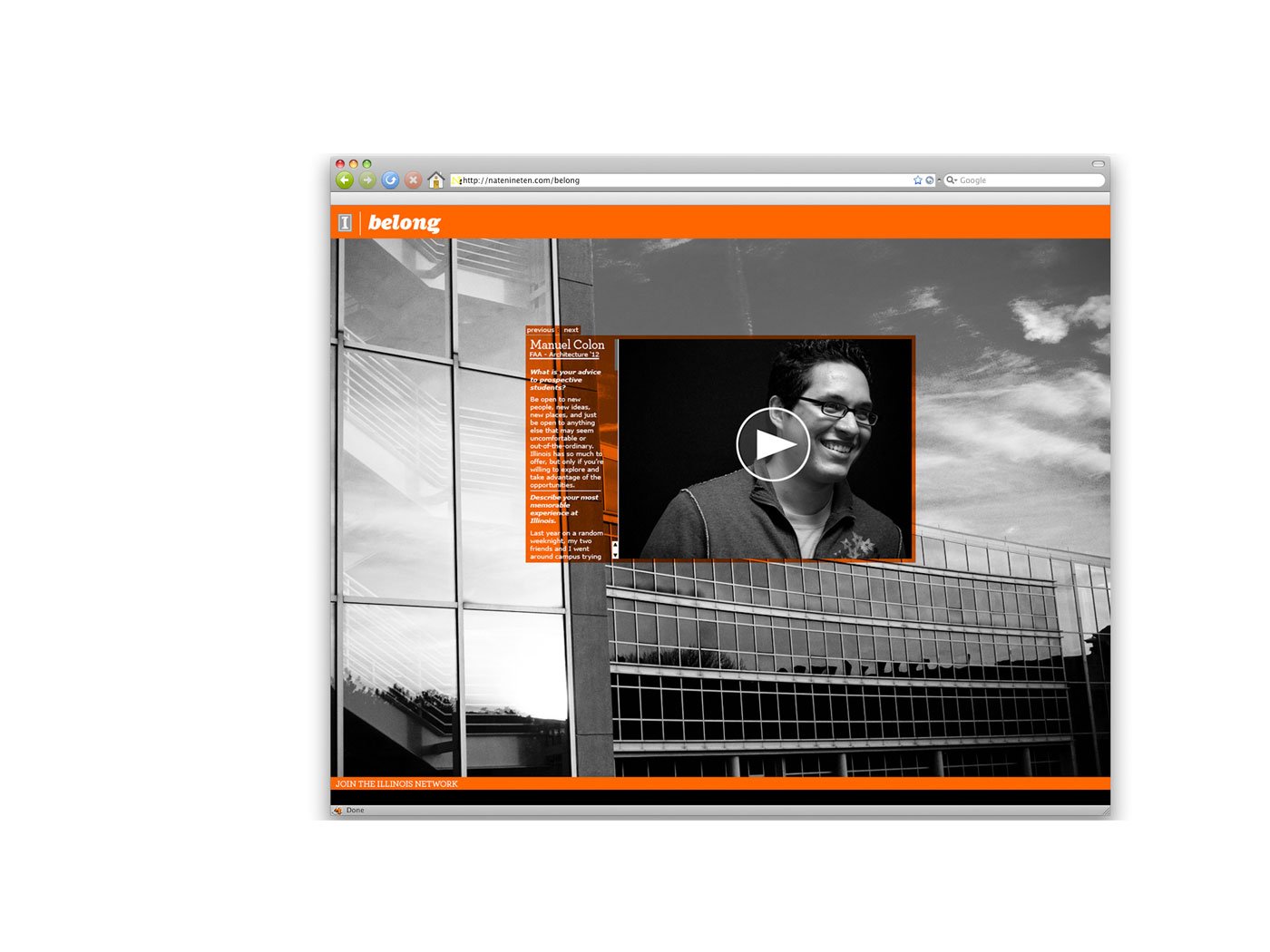 Flash based sub-site to promote the University of Illinois. Invites users to engage in University information in a dynamic way.